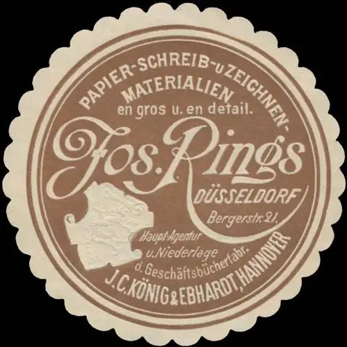 Papier-Schreib- und Zeichenmaterialien, Bergerstraße 21, Agentur der Geschäftsbücherfabrik J.C. König & Ebhardt, Hannover, , Größe/Zustand: 6 , guter Zustand, Original alte Reklamemarke die seinerzeit für die Werbung benutzt wurde