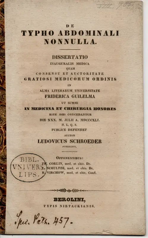 Schröder, Ludwig: De typho abdominali nonnulla. Dissertation.