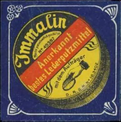 Immalin anerkannt bestes Lederputzmittel, Größe/Zustand: 4x4 , guter Zustand, Original alte Reklamemarke die seinerzeit für die Werbung benutzt wurde
