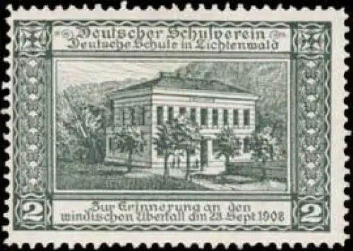Spendenmarke zur Erinnerung an den windischen Überfall am 23. September 1908, Größe/Zustand: 3x5 , guter Zustand, Original alte Reklamemarke die seinerzeit für die Werbung benutzt wurde