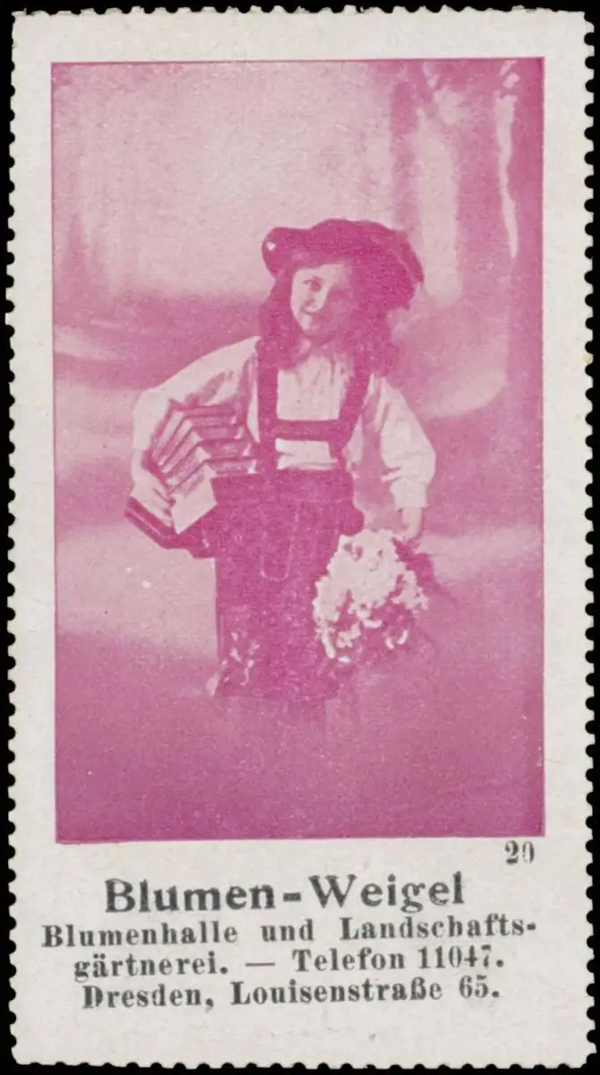 Blumenhalle und Landschaftsgärtnerei, Louisenstraße 65, Größe/Zustand: 7x4 , guter Zustand, Original alte Reklamemarke die seinerzeit für die Werbung benutzt wurde