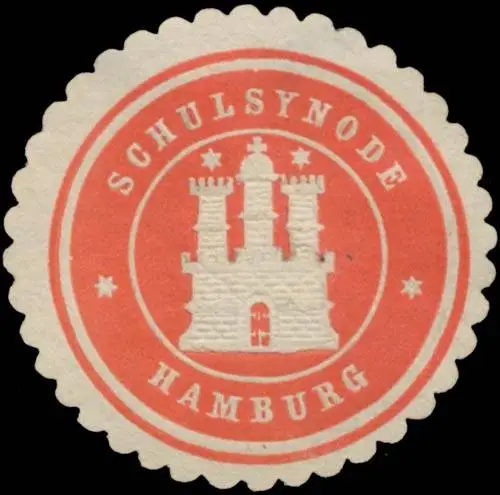 Schule, rot, weiß, geprägt, Größe/Zustand: 3 , leicht fleckig, Original Verschluss-Siegelmarke aus Papier welche früher von Behörden, Firmen etc. zum Versiegeln der Briefe benutzt wurden