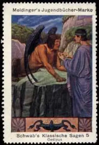 Oedipus. Serie Meidingers Jugendbücher-Marke, Nr. 5, Rückseite mit Werbung, Größe/Zustand: 7x5 , guter Zustand, Original alte Reklamemarke die seinerzeit für die Werbung benutzt wurde