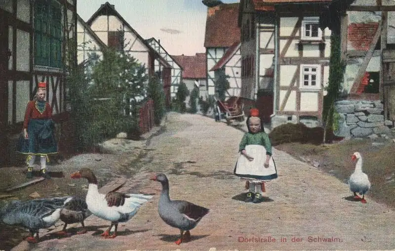 Schwalm - Dorftsraße mit Kind und Gänsen