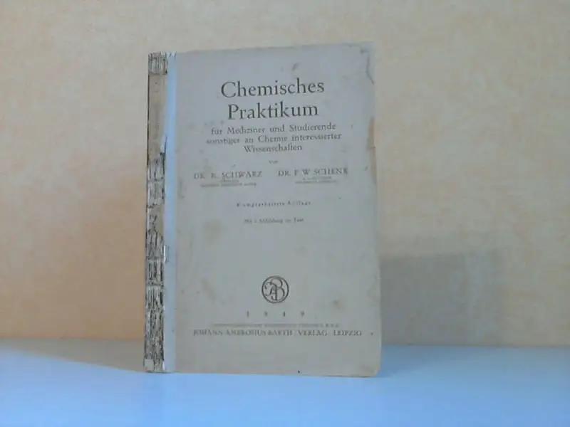 das Buch ist ein Dachbodenfund, stark gebräunt, fleckig, der Rücken ist kaputt, keine losen Seiten, aus dem Inhalt: Vorbemerkungen - Anorganischer Teil: Säuren, Basen, Salze - Die wichtigsten Metalle - Nichtmetalle - Qualitative Analyse - Quantitative Analyse. Organischer Teil: Qualitative Analyse organischer Stoffe - Kohlenwasserstoffe - Hydroxylverbindungen der Kohlenwasserstoffe - Amine - Aldehyde und Ketone - Organische Säuren - Abkömmlinge der organischen Säuren - Kohlenhydrate - Eiweißstoffe Beschreibung vom Antiquariat Ardelt 3i2b Antiquariat Ardelt
