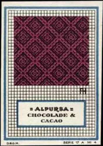 Chocolade & Cacao, Serie Nr. 17, Bild 4, Stickmuster-Serie, Stickerei, Größe/Zustand: 7x5 , guter Zustand, Original alte Reklamemarke die seinerzeit für die Werbung benutzt wurde