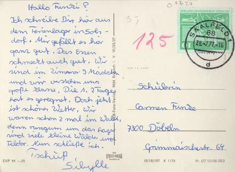 Postleitzahl:07427 (neu) / O 6825 (alt)