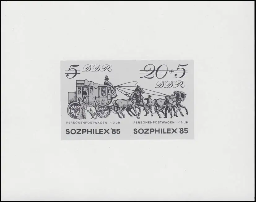 Schwarzdruck der DDR Sozphilex 1985 Postkutsche Zusammendruck 2965-66 S