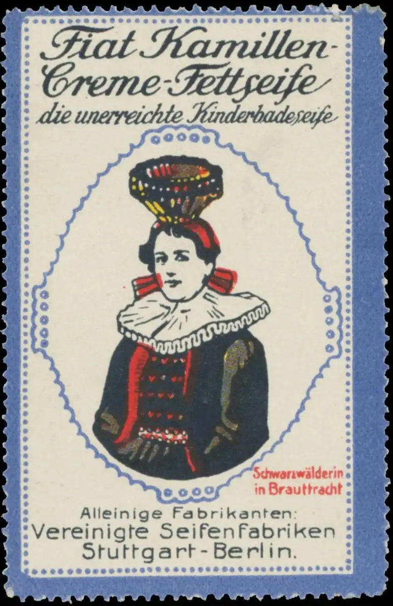 Fiat Kamillen-Creme-Fettseife, Größe/Zustand: 7x5 , guter Zustand, Original alte Reklamemarke die seinerzeit für die Werbung benutzt wurde