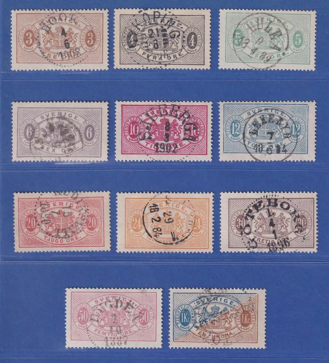 Schweden 1881 Dienstmarken gez. 13 Mi.-Nr. 1-11 B Satz kpl. gestempelt
