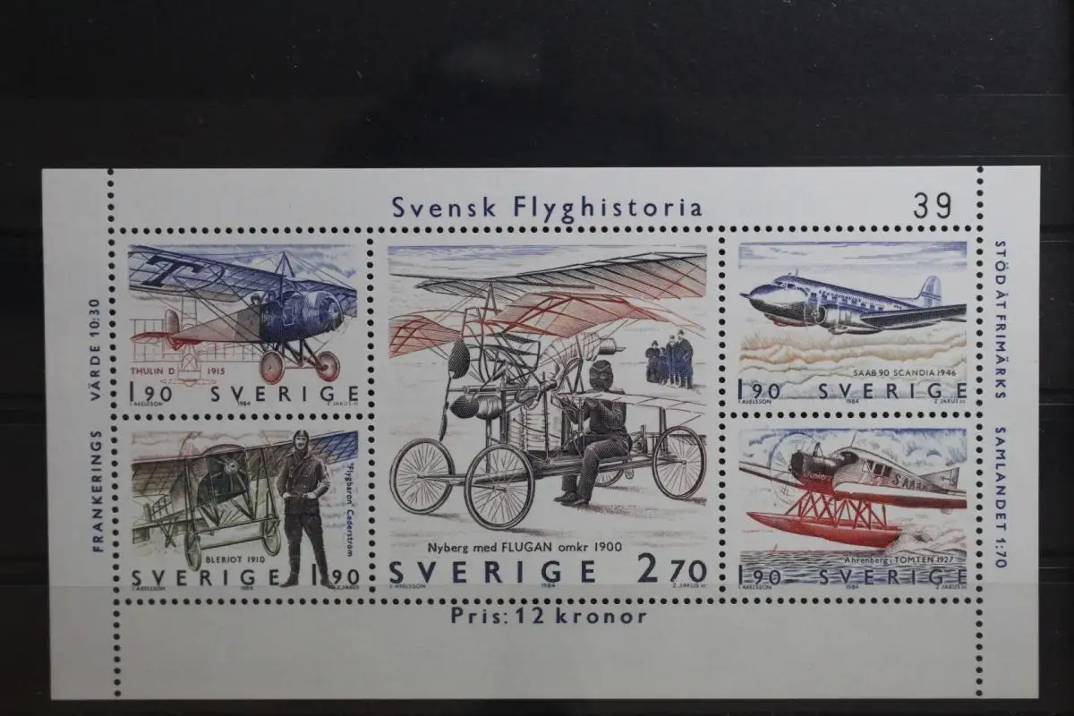 Schweden Block 12 mit 1300-1304 postfrisch Flugzeuge #TE882