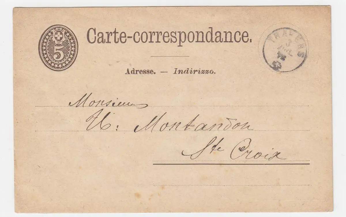 Schweiz 1878, Fingerhut Stpl. TRAVERS auf 5 C. Ganzsache