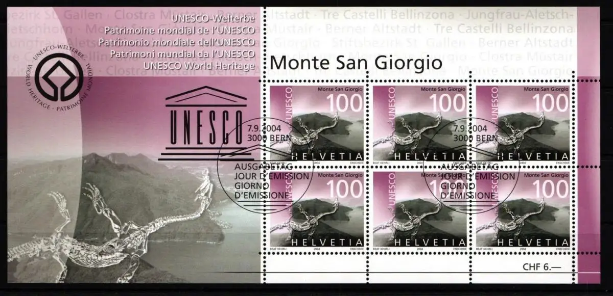 Schweiz 1894 gestempelt Kleinbogen UNESCO-Welterbe #HY847