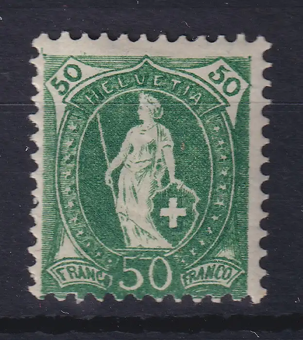 Schweiz 1907/08 Stehende Helvetia 50 C grün Mi.-Nr. 92Da ungebraucht *