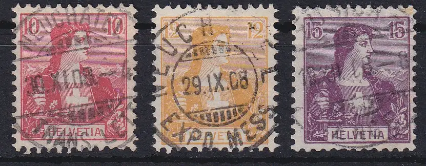 Schweiz 1907 Helvetia Mi.-Nr. 98-100 gestempelt