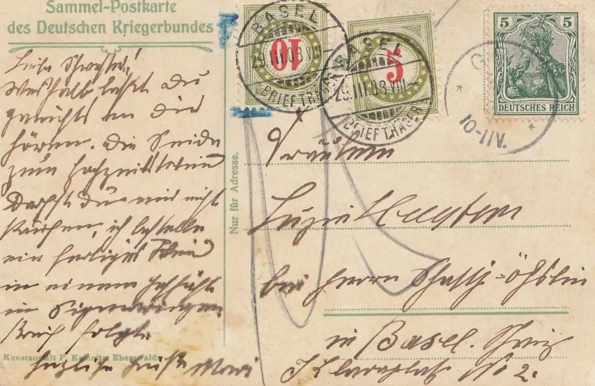 Schweiz: 1908: Graz nach Basel, Nachgebühr