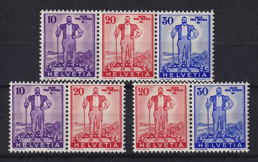 Schweiz 1936 alle 3 möglichen Zusammendrucke aus Block 2 postfrisch **