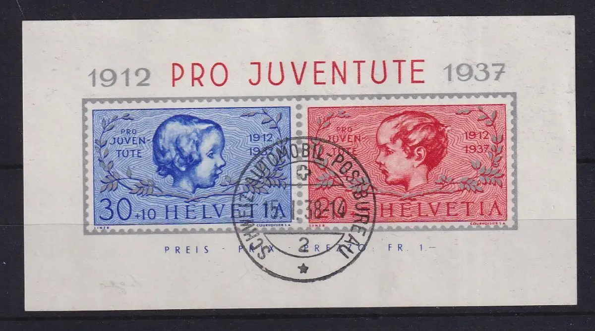 Schweiz 1937 Pro Juventute Mi.-Nr. Block 3 gestempelt AUTOMOBIL-POSTBUREAU