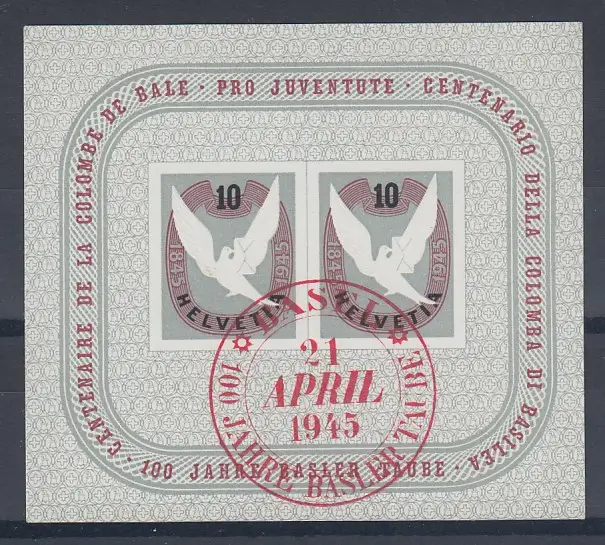 Schweiz 1945 Basler Taube - Block 12 mit rotem Sonderstempel