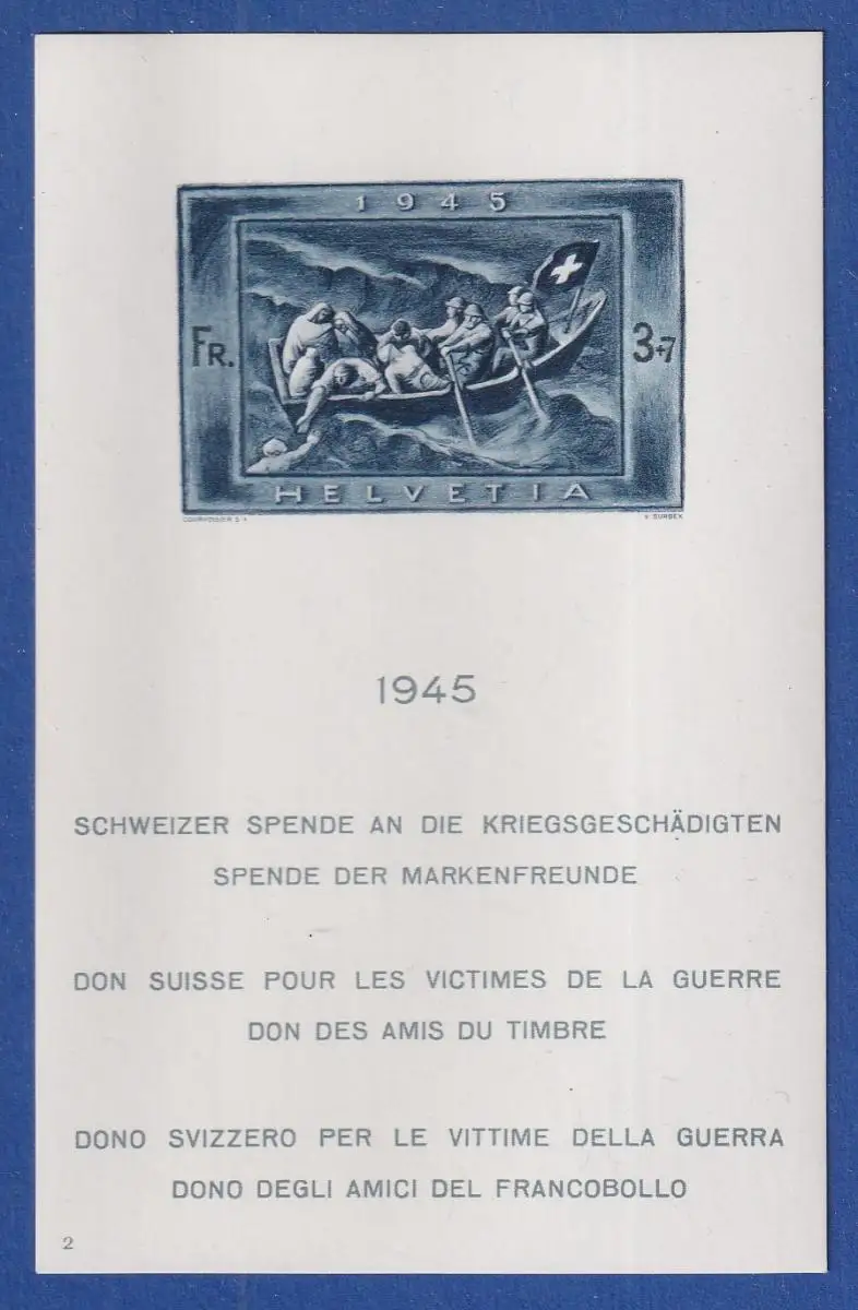 Schweiz 1945 Kriegsgeschädigtenspende Mi.-Nr. Block 11 postfrisch **