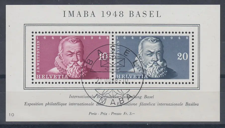 Schweiz 1948 IMABA Basel - Block 13 mit Sonderstempel
