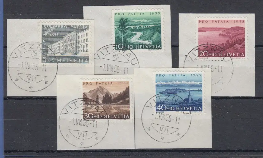 Schweiz 1955 Pro Patria Mi.-Nr. 613-617 Satz kpl. O auf Briefstücken