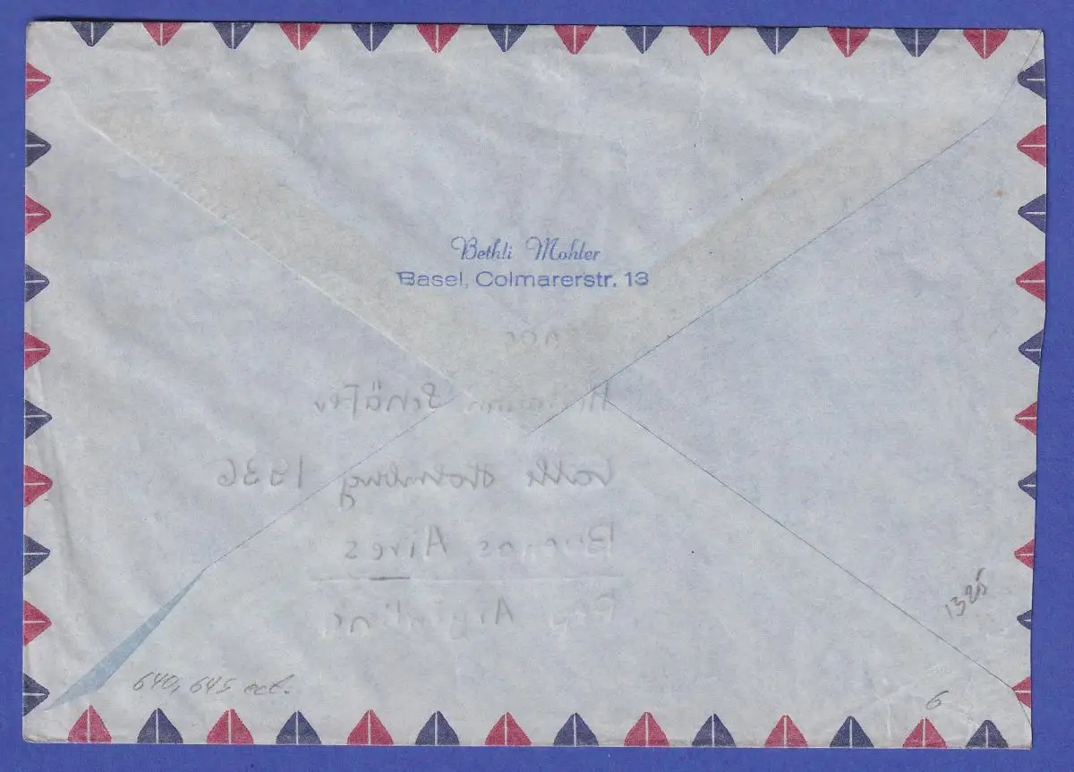 Schweiz 1957 Mi.-Nr. 640, 641, 645, 647 auf Luftpost-Brief BASEL - BUENOS AIRES