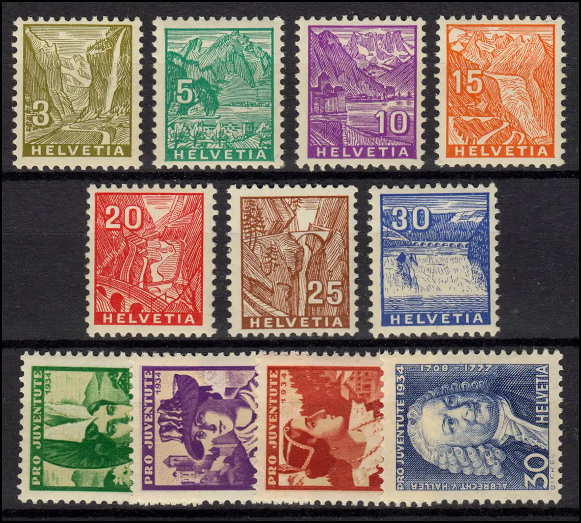 Schweiz 270 - 284 Jahrgang 1934 OHNE Block 1 komplett, postfrisch **