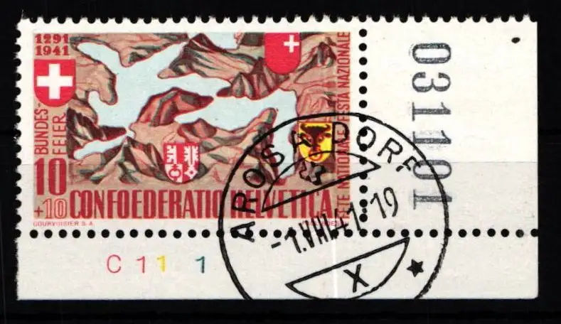 Schweiz 396 gestempelt Eckrand mit Formnummer und Bogenzähler #KP217