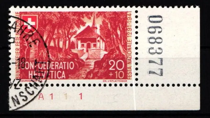 Schweiz 397 gestempelt Eckrand mit Formnummer und Bogenzähler #KP218
