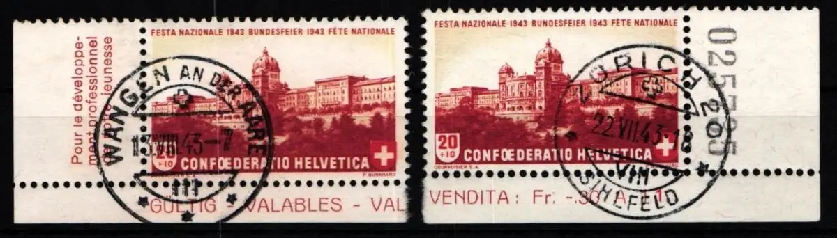 Schweiz 421 gestempelt Eckrand Formnummer Bogenzähler #KP278