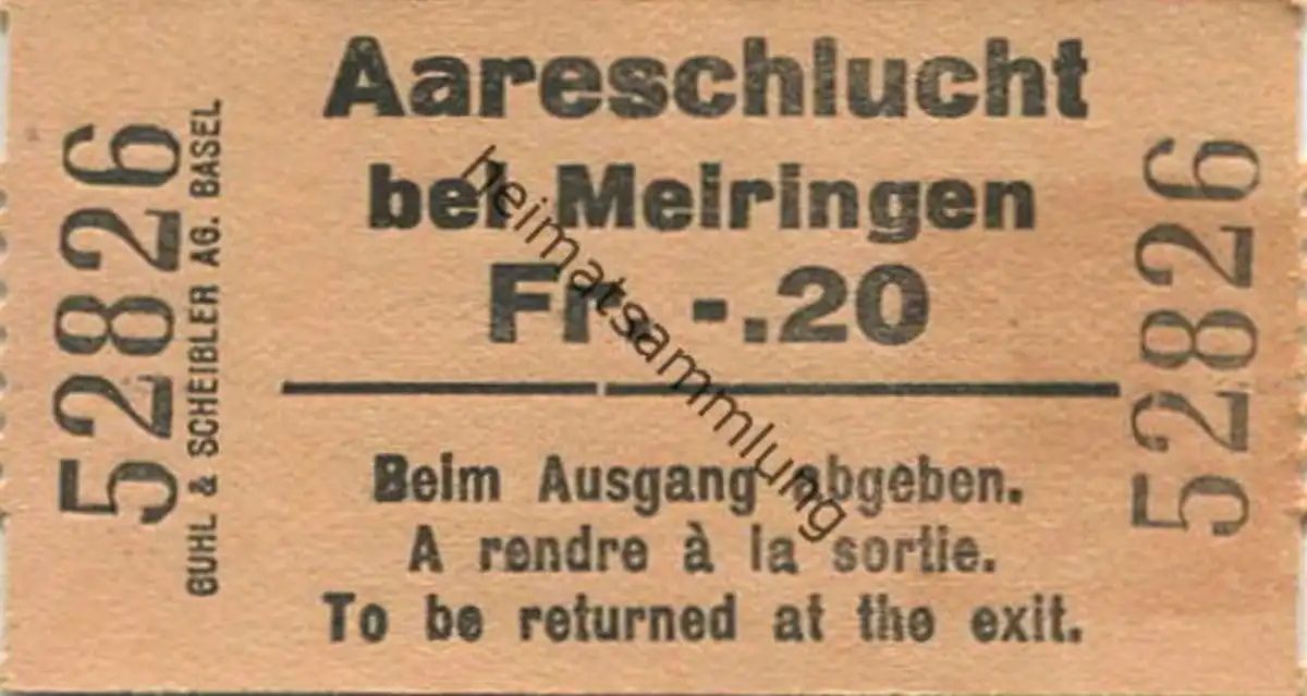 Schweiz - Aareschlucht bei Meiringen - Eintrittskarte Fr. -.20