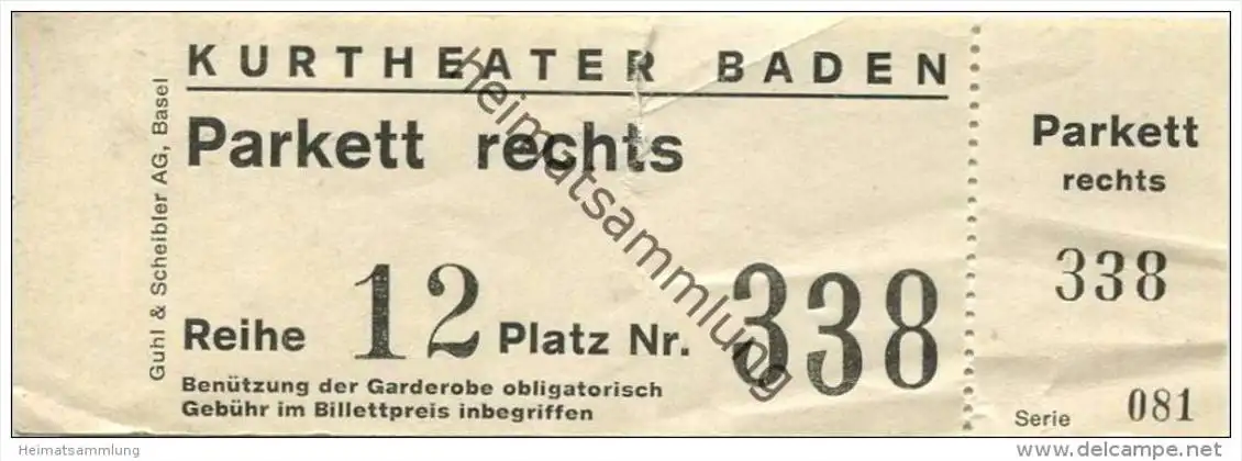 Schweiz - Aargau - Kurtheater Baden - Eintrittskarte