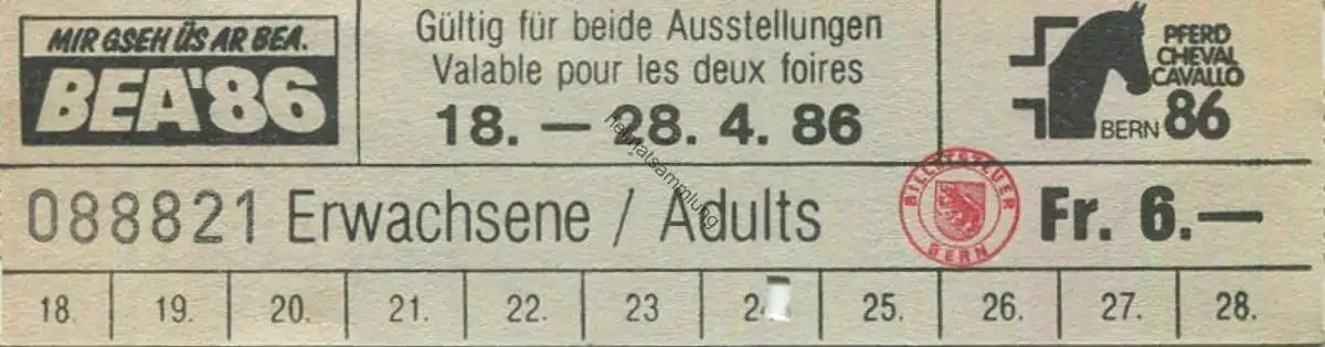 Schweiz - BEA86 Bern - Eintrittskarte (G61038)