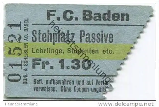 Schweiz - Baden - F.C. Baden - Stehplatz Passive Lehrlinge Studenten etc. (E52869)