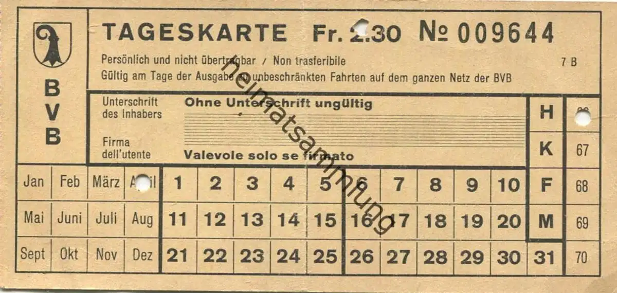 Schweiz - Basel - BVB Tageskarte Fr. 2.30