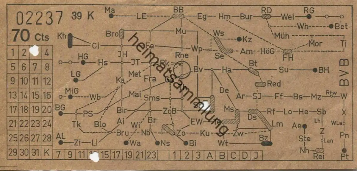 Schweiz - Basel - Basler Verkehrs-Betriebe BVB - Billet - Fahrschein 70Cts