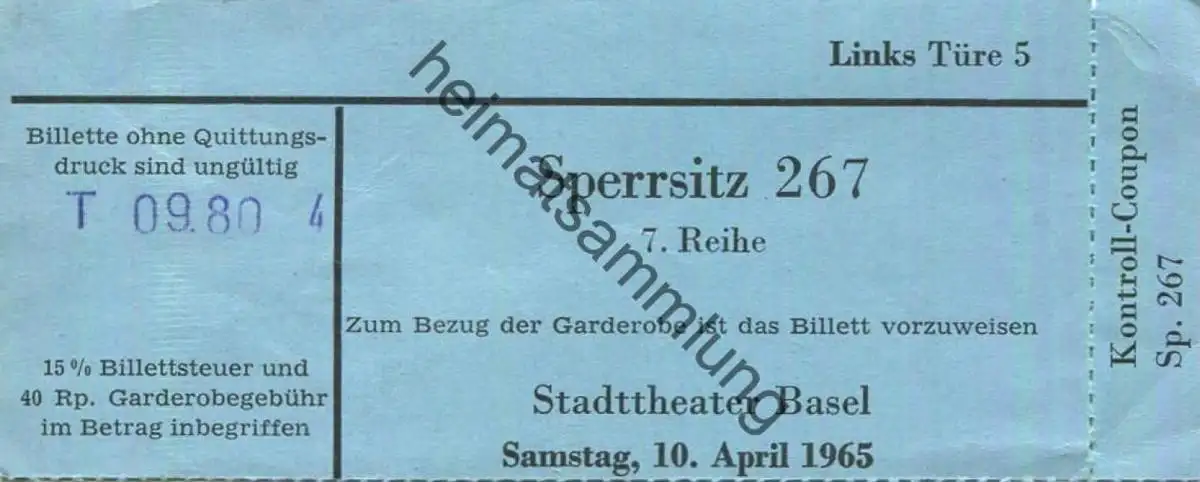 Schweiz - Basel - Stadttheater - Eintrittskarte 1965 (G61145)