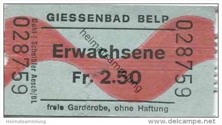 Schweiz - Bern - Belp - Giessenbad - Eintrittskarte (G33356)
