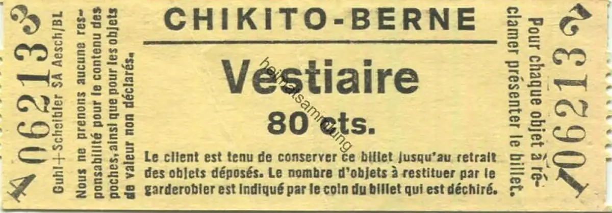 Schweiz - Bern - Chikito-Berne - Vestiaire - Eintrittskarte (G61014)