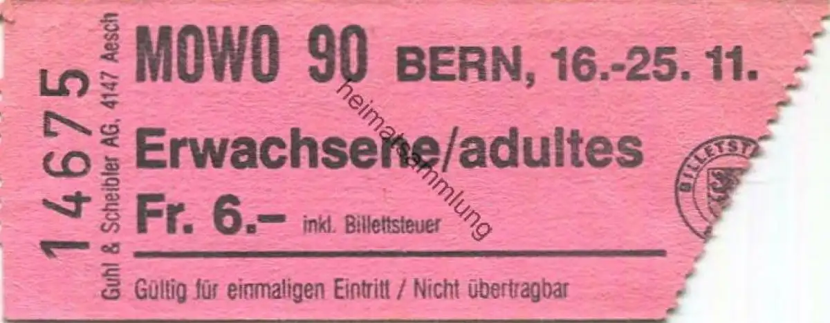 Schweiz - Bern - MOWO 90 - Eintrittskarte