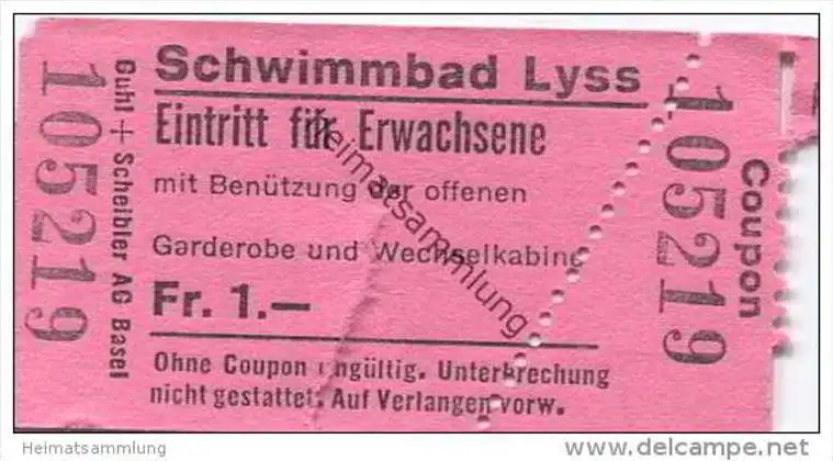Schweiz - Bern - Schwimmbad Lyss - Eintritt für Erwachsene Fr. 1.-