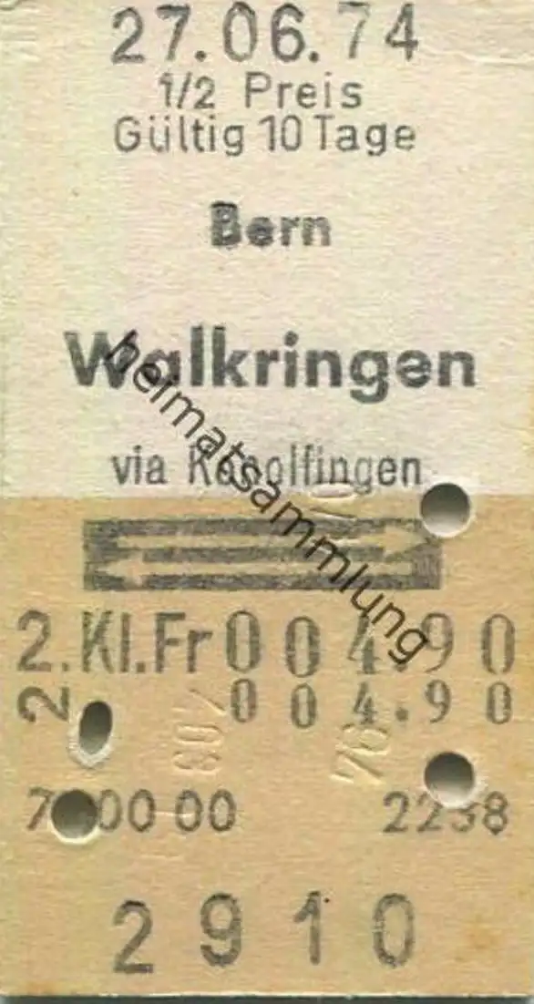 Schweiz - Bern Walkringen via Konolfingen und zurück - Fahrkarte 1974 1/2 Preis (G59208)