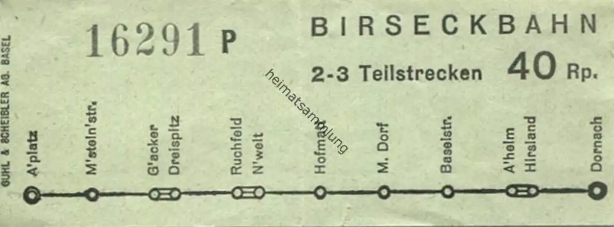 Schweiz - Birseckbahn - Fahrschein 40Rp.
