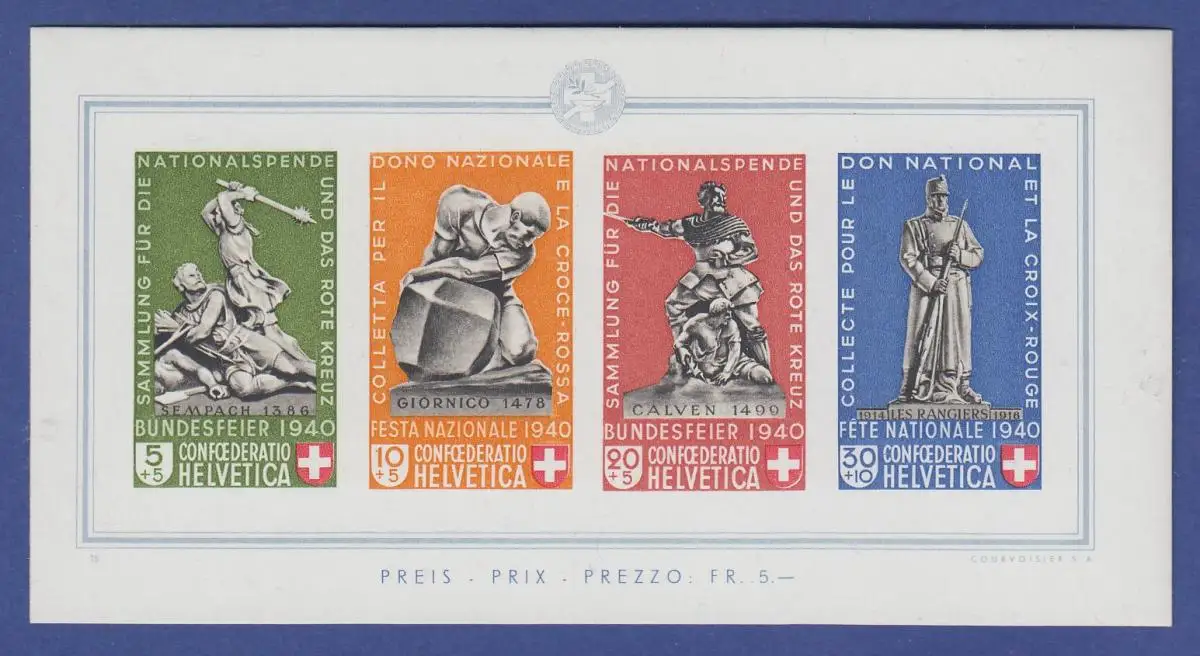 Schweiz Blockausgabe Pro Patria / Bundesfeier 1940 Mi.-Nr. Block 5 **