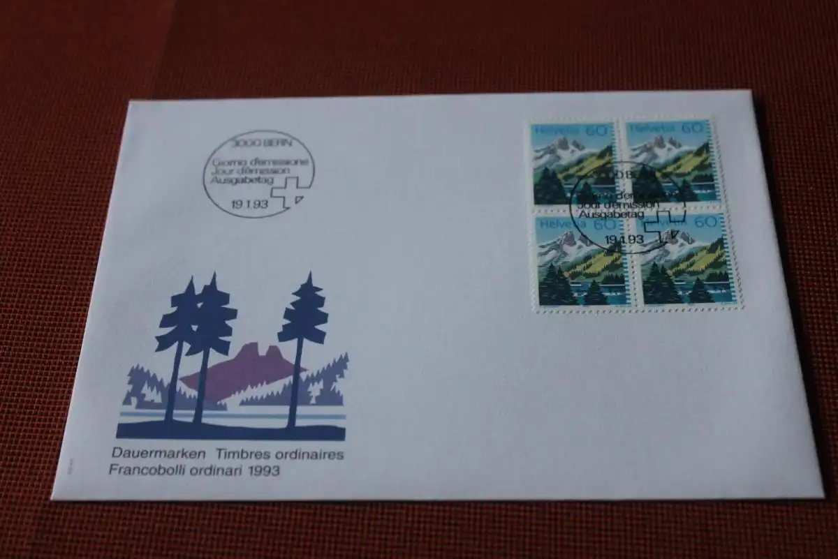 Schweiz, Dauermarke 60 Rp., 1993, Bergseen, FDC; Viererblock-FDC