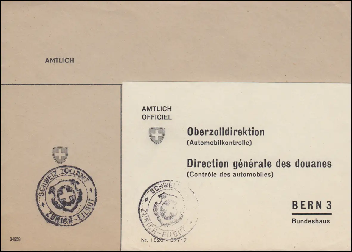 Schweiz Dienstbrief Zollamt Zürich an Oberzolldirektion Automobilkontrolle Bern