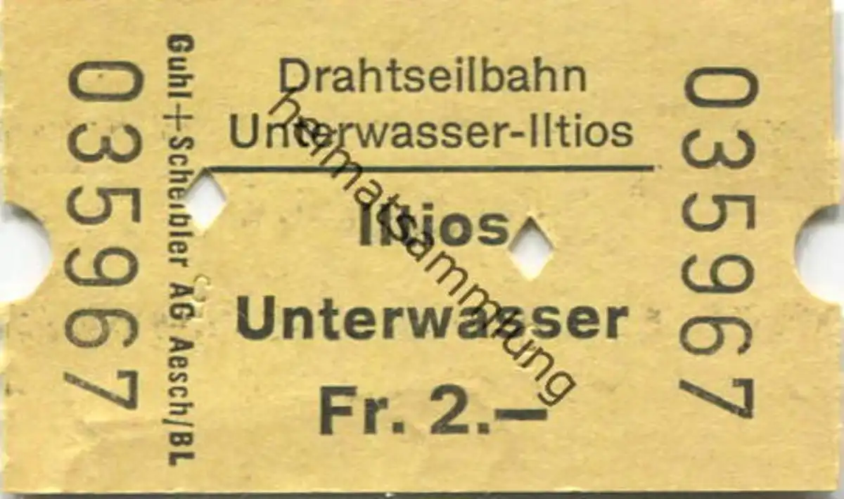 Schweiz - Drahtseilbahn Iltios Unterwasser - Fahrschein Fr. 2.-
