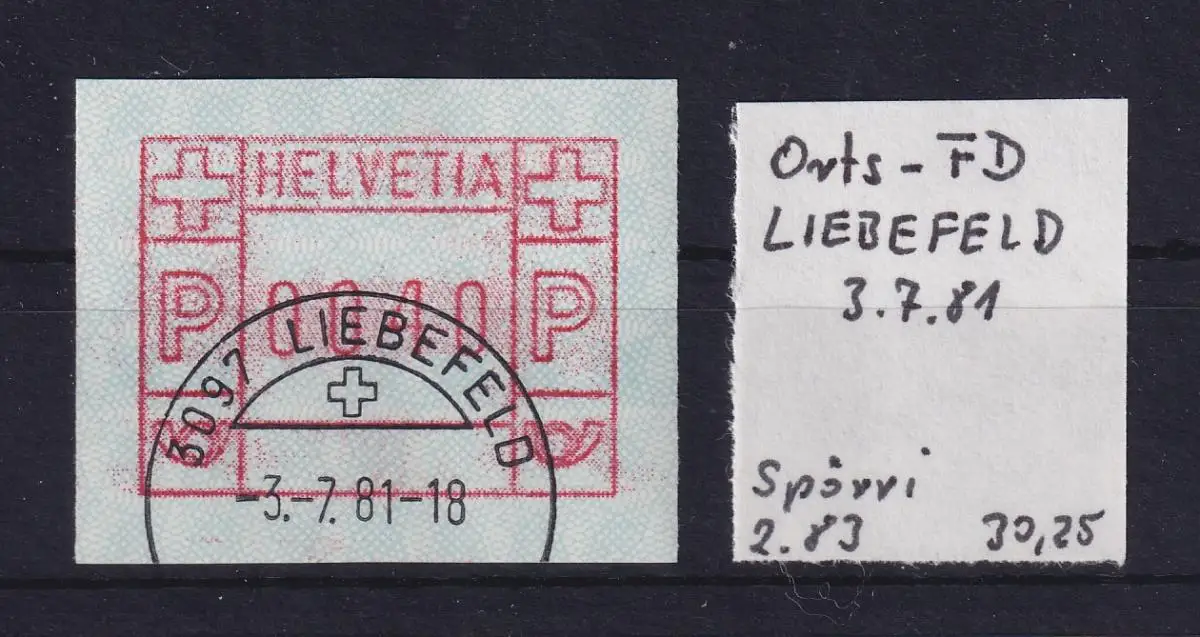 Schweiz FRAMA-ATM Mi-Nr 3.1b Wert 0040 gestempelt Frühdatum LIEBEFELD 3.7.81