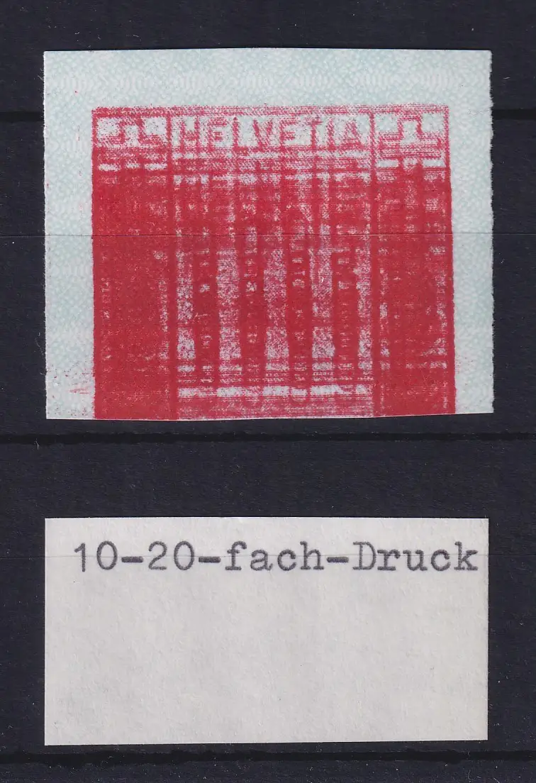 Inschrift HELVETIA klein, Papier ohne Fasern, Ziffern schmal, Druck bräunlichrot